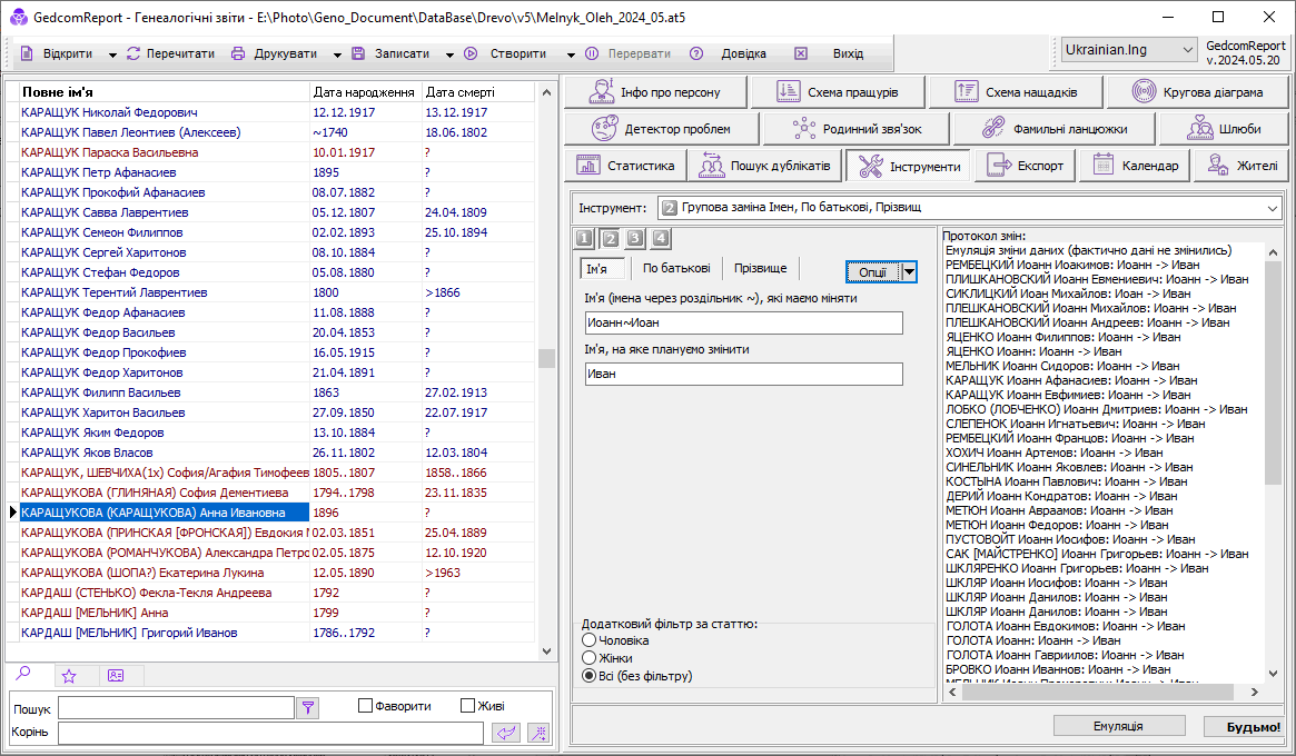 для групової заміни даних у GEDCOM-файлі (або at4/at5) і на даний