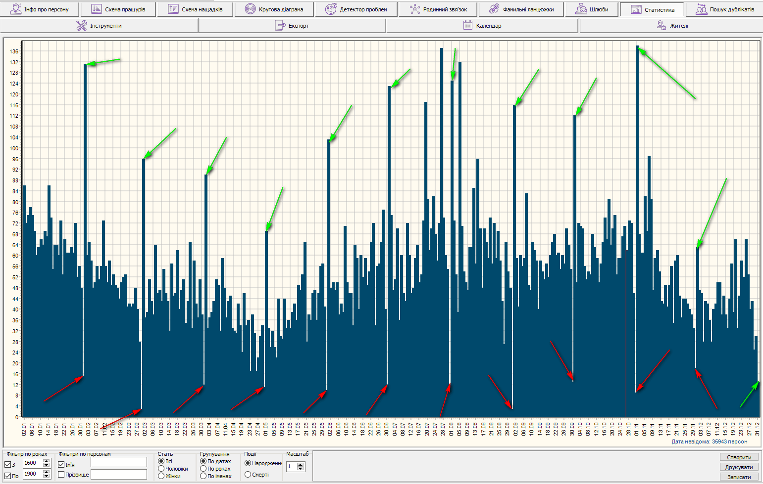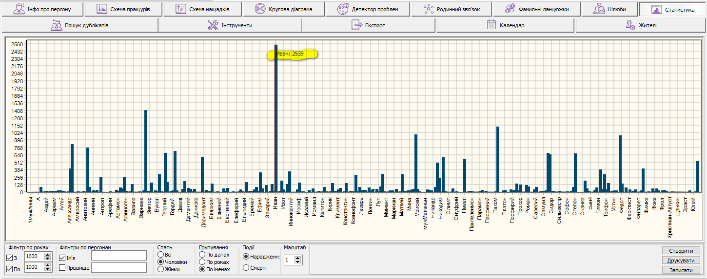 Якщо зробити вибірку за датами народження за всіма іменами, то на