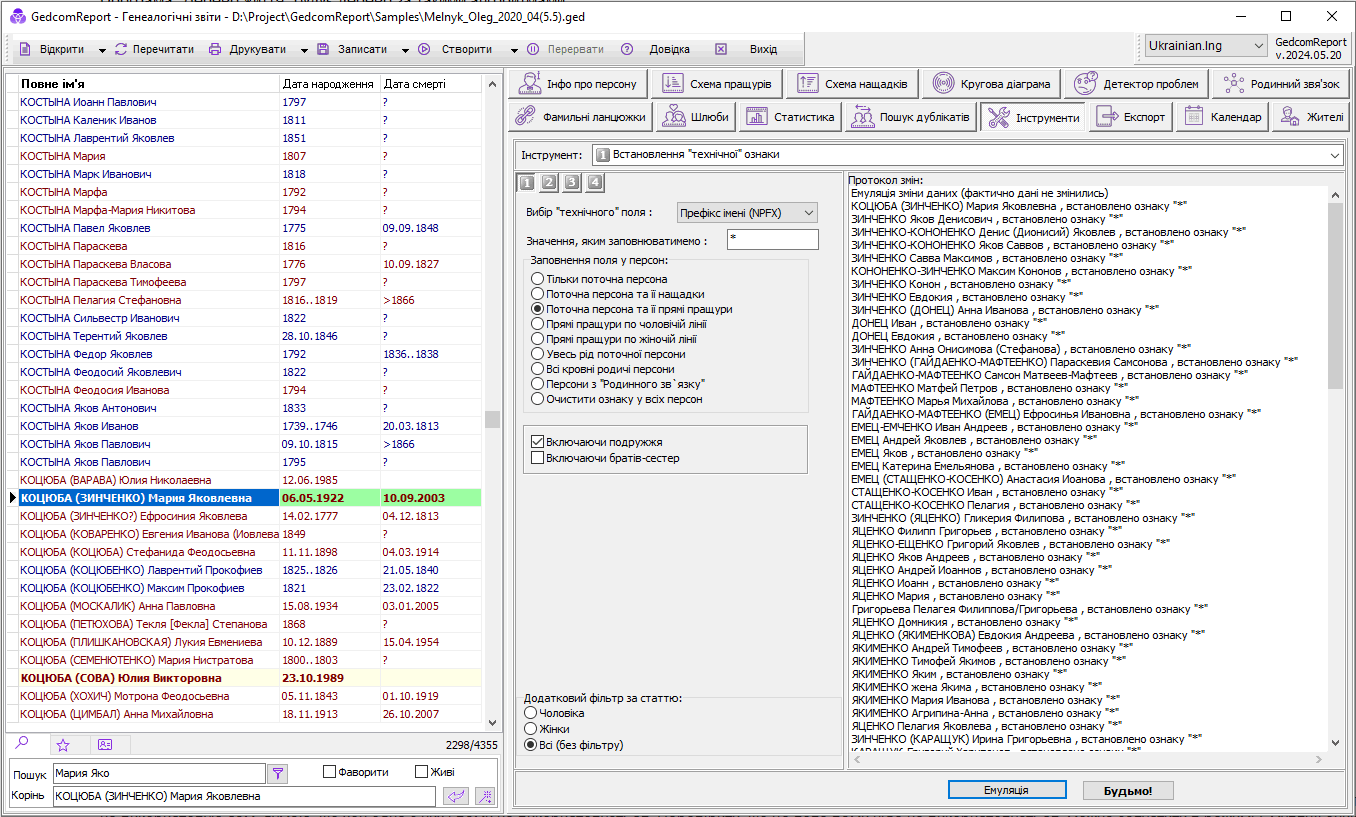 для роботи з базою Древа Життя. Оскільки GedcomReport працює з