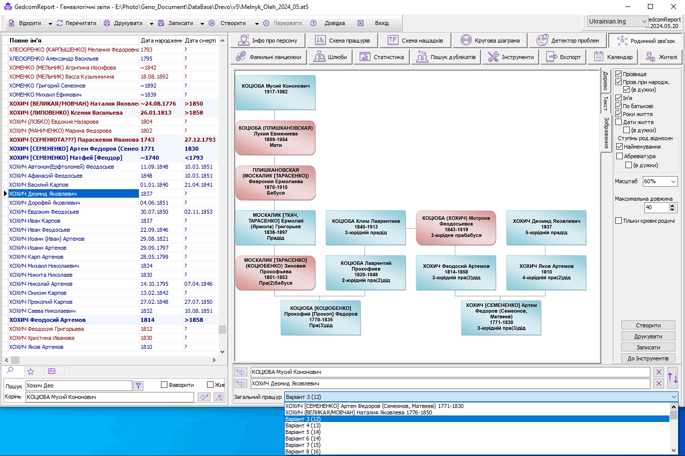 пращурами обраних персон і між персонами не пов'язаними родинними