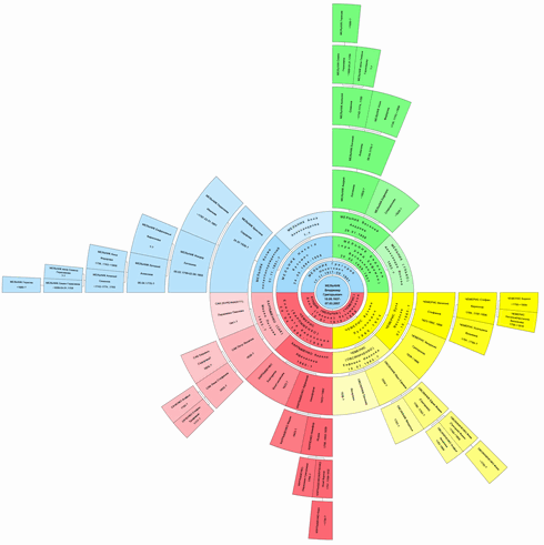 Детальніше про види діаграм: Повне коло - з промальовуванням секторів незалежно від наявності інформації про персон у даному осередку (на зображенні вище) Секторна - з промальовуванням лише тих секторів, у яких є інформація про персону. У цьому випадку вона виглядатиме так: